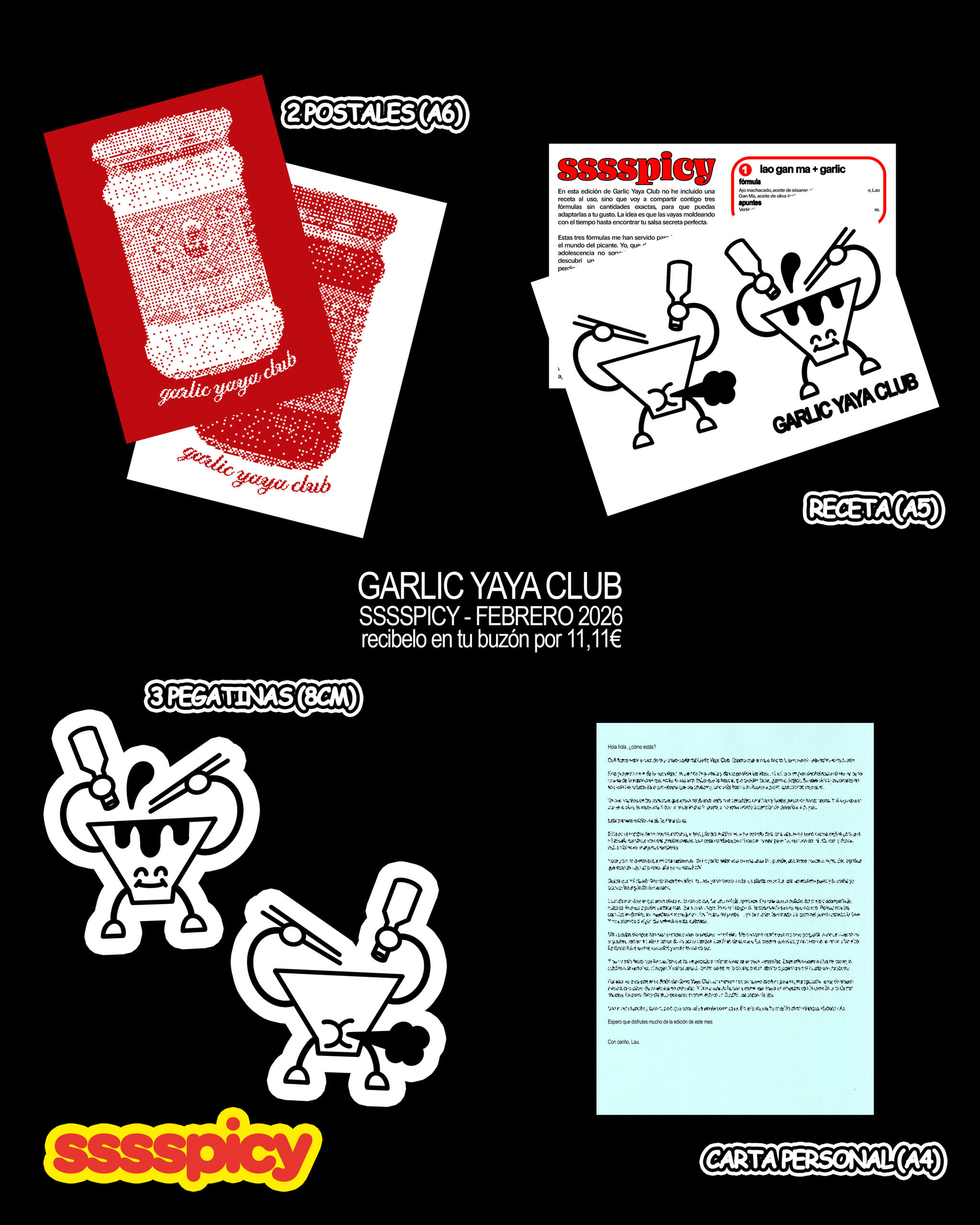 Este club nació de la necesidad de conectar con lo auténtico, lo sencillo y esas recetas que te alegran el día. También nació de la necesidad de salir de la pantalla, de desconectar de las plataformas que vienen y van, y tener algo tangible, algo que puedas tocar, guardar y regalar. En un mundo donde lo digital se lleva la mayor parte de nuestra atención, Garlic Yaya Club es un refugio para lo físico, para lo que permanece, como ese libro de recetas de tu abuela.Cada mes, recibirás un recetario postal único, inspirado en mi vida, en mis experiencias y en todo lo que me ha enseñado la cocina casera. No solo se trata de recetas, sino de una experiencia, de una historia, de algo que puedes sostener en tus manos y que forme parte de tu propia historia. Es un pedazo de mi vida en cada carta, un fragmento de lo que me emociona, de lo que me conecta con mis raíces y con mi forma de ver el mundo.Lo importante de este recetario no son solo las recetas, ya que hoy en día puedes encontrar todo en internet. Es más una invitación a desconectar, a sentir y a compartir algo que no se borra con un clic. Aquí no hay pantallas, no hay algoritmos, solo comida, momentos y recuerdos. Esas recetas sencillas que nos cuidan, que se preparan con cariño y se disfrutan entre risas, se transforman en algo físico, algo tuyo, algo que permanece.